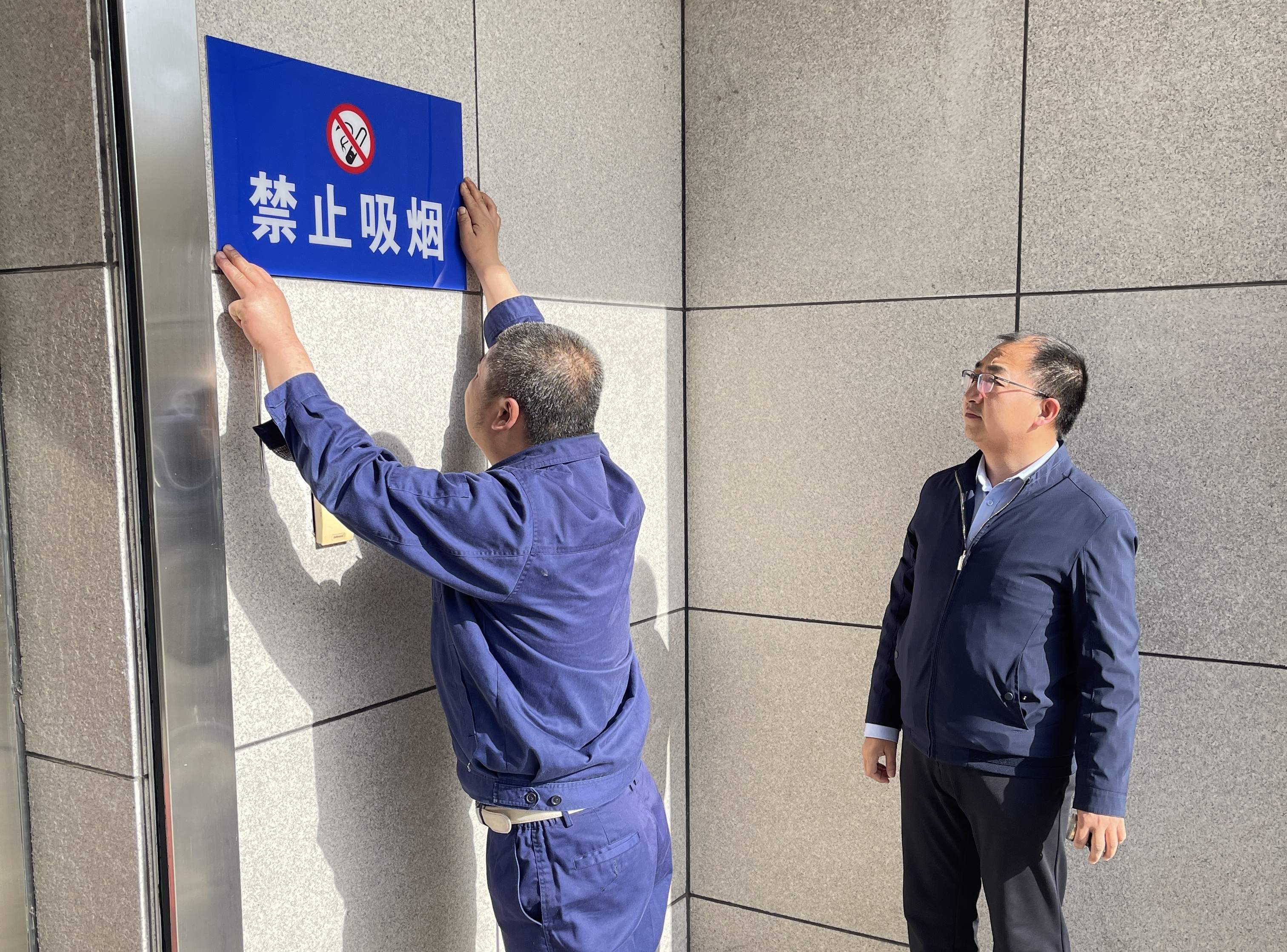 为深入开展宝鸡国家卫生城市复审工作,4月8日,市级机关物业管理中心组织人员在行政中心办公区域重点部位张贴禁烟标识、禁烟宣传画250余张,强化干部职工禁烟意识,引导大家积极营造无烟、健康、安全的工作生活环境。
