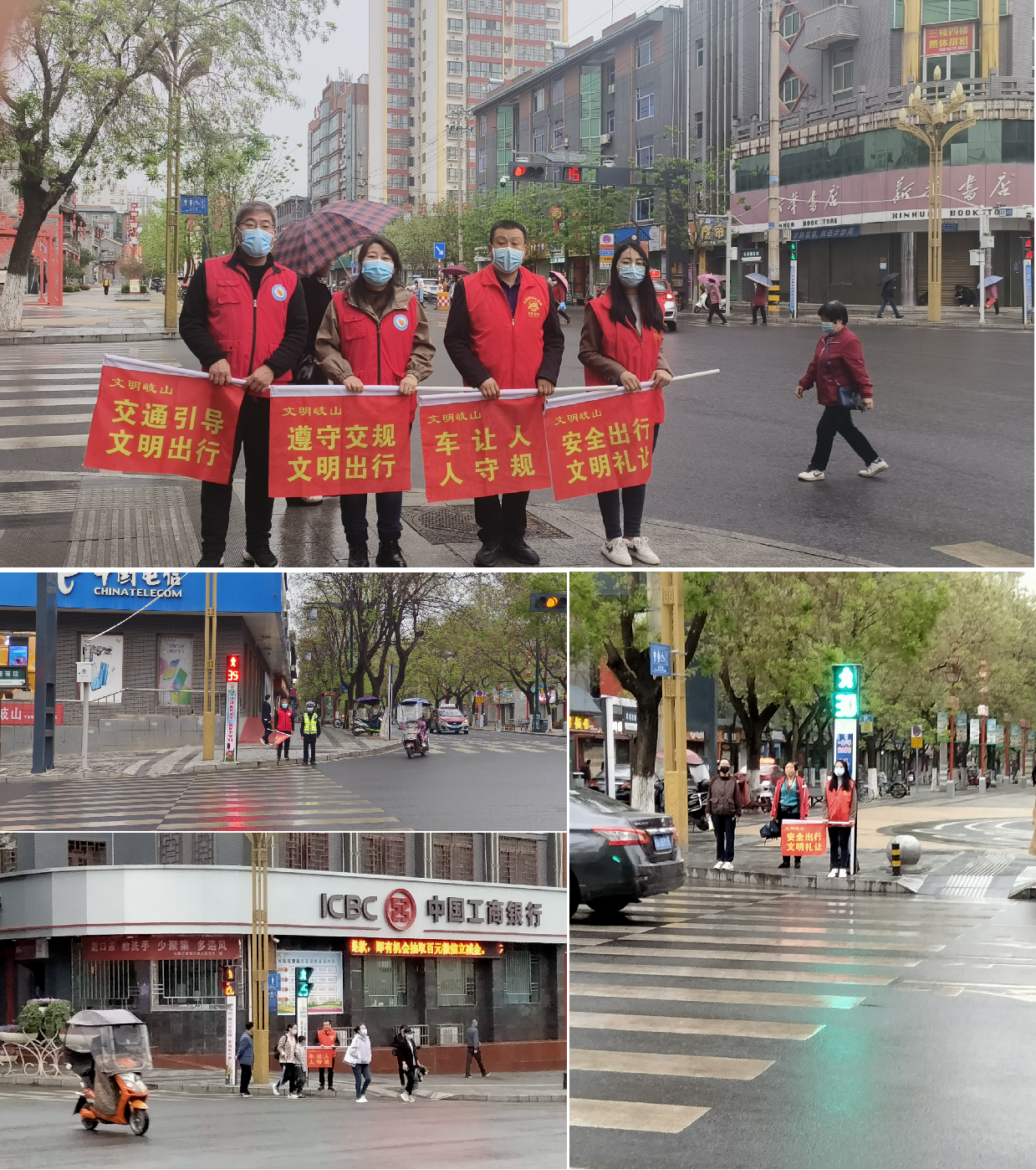 4月13日上午,中心党员干部身着红色志愿者马甲,手执“文明交通”手旗,在县新华书店十字路口冒雨执勤站岗,对行人不看信号灯、不走斑马线、骑乘电动车不佩戴安全头盔等不文明交通行为进行纠正劝导,引导广大群众摒弃交通陋习,遵守法规出行,走文明路、行文明车、做文明人。