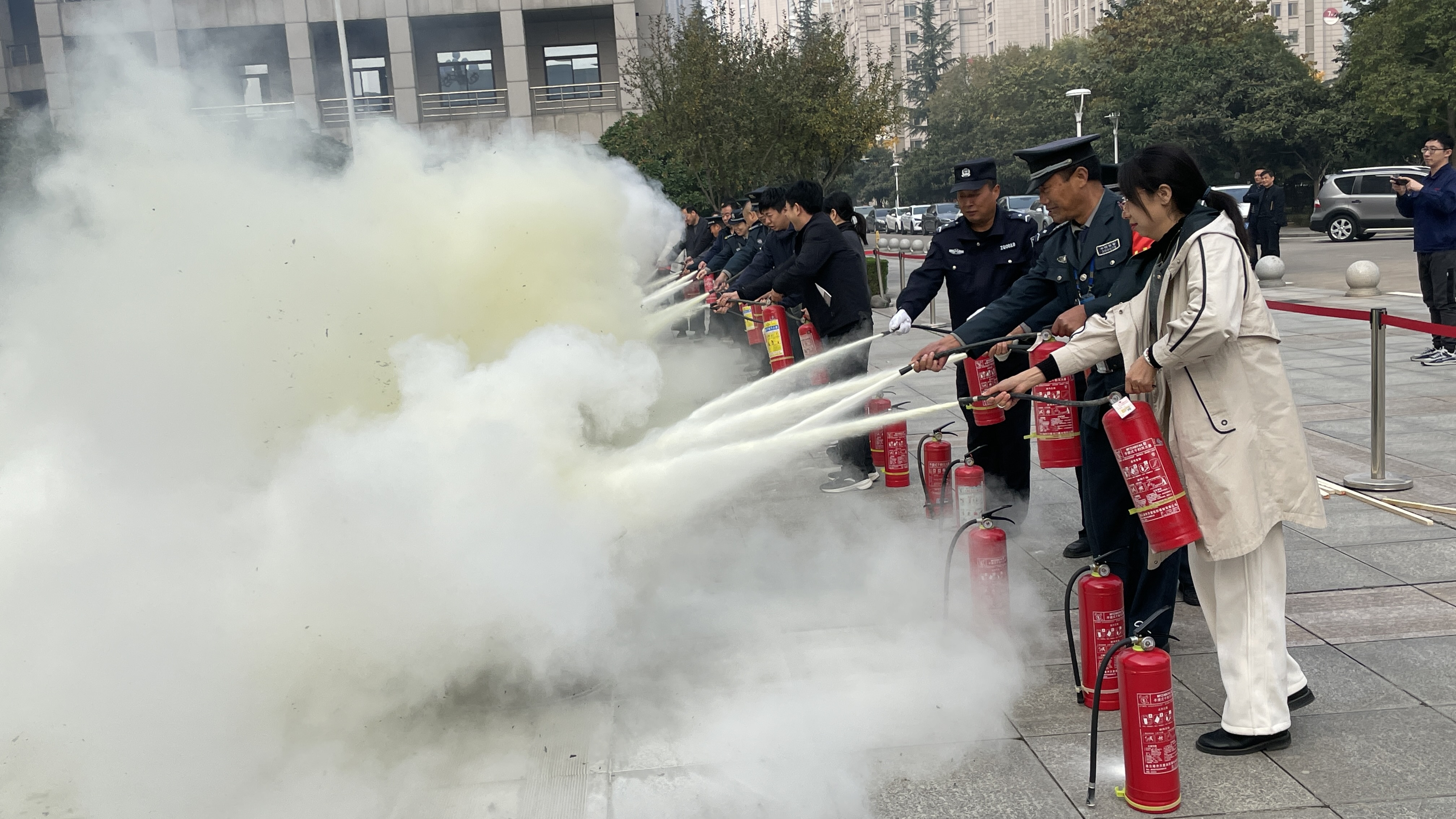 培训会后,在行政中心1号楼北广场进行了灭火应急演练,40多名参会人员进行了现场操作。